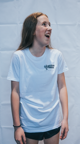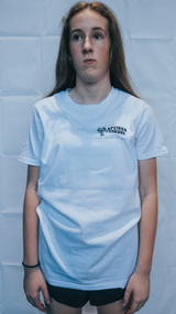 The Logo shirt is an extended length t-shirt in a white colourway that features the brand's full logo on the front and back along with the crest on the back.