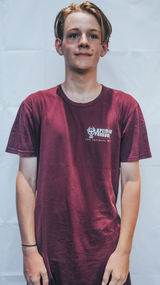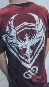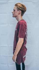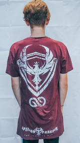 The Logo shirt is an extended length t-shirt in a Maroon colourway that features the brand's full logo on the front and back along with the crest on the back.